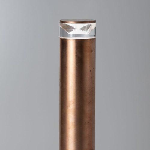 Outdoor LED device, radial beam 360° or single side light beam 180°, made of anodized aluminium or natural copper and clear methacrylate optic.