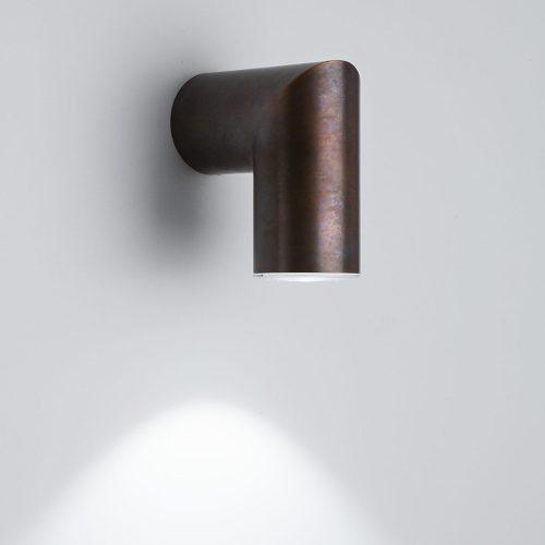 Indoor/Outdoor wall LED lamp, made of painted brass, aluminum heatsink and clear PMMA optic.